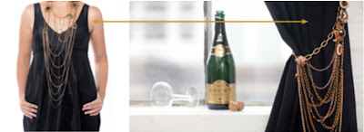 In just an afternoon, you can make this gorgeous curtain tie. Just pick up some necklaces and broaches from a flea market, estate sale, Target, Forever21, or J.Crew on sale. Or if you’re just looking to add a little sparkle for a single event, why not use necklaces you already have? Grab a wire cutter and a pair of pliers, and experiment with layering. If you’re using necklaces you’d like to wear again, just hook them on to one another.